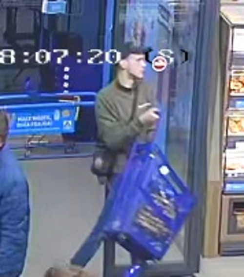 Mężczyzna ma około 30 lat, około 180 cm wzrostu; ubrany był w zieloną kurtkę, niebieskie spodnie, czarne buty sportowe, czarną czapkę z daszkiem, przez ramię miał przewieszoną czarną saszetkę.