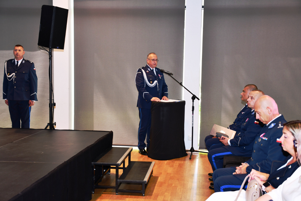 Na wstępie Dowódca uroczystości, Naczelnik Wydziału Ogólnego, podinspektor Paweł Trzcinka złożył meldunek Zastępcy Komendanta Stołecznego Policji insp. Robertowi Frąckowiak.