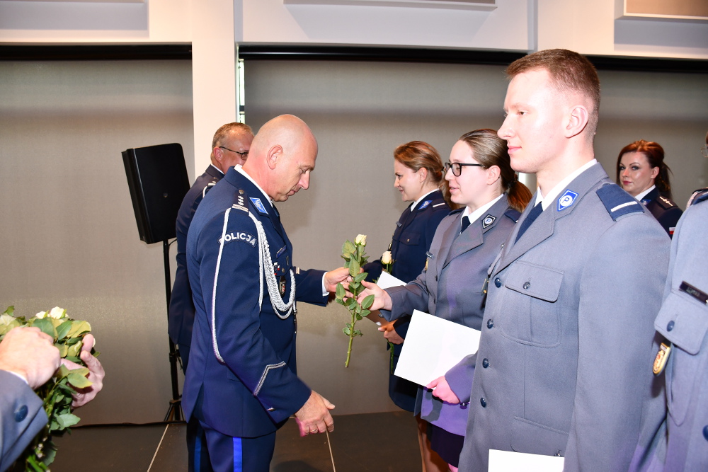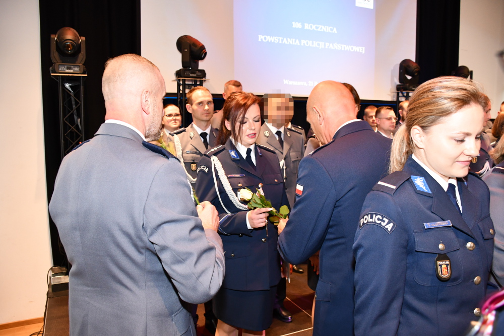 Tegoroczne Święto Policji obchodzone w 106 rocznicę powołania Policji Państwowej to data szczególna dla wszystkich funkcjonariuszy. To czas awansów i podziękowań, zarówno dla policjantów i pracowników Policji, jak również ich rodzin. Wczoraj na uroczystości obchodów Święta Policji w Komendzie Rejonowej Policji Warszawa VI zorganizowanej w Centrum Kultury i Aktywności w Dzielnicy Targówek m.st. Warszawy przy ul. Siarczanej 6 swoją obecnością zaszczycił nas Zastępca Komendanta Stołecznego Policji inspektor Robert Frąckowiak, Burmistrzynie dzielnic, przedstawiciel Prokuratury Rejonowej Warszawa Praga Północ w Warszawie oraz przedstawiciele służb i instytucji na co dzień współpracujących z Naszą jednostką. W trakcie uroczystości zastępca szefa stołecznych policjantów wręczył policjantkom kwiaty z okazji 100 rocznicy powstania Policji Kobiecej.
