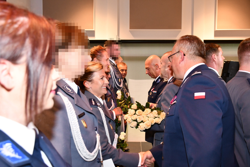 We wczorajszej uroczystości zorganizowanej w ramach obchodów 106 rocznicy powstania Policji Państwowej w Komendzie Rejonowej Policji Warszawa VI, która odbyła się w Centrum Kultury i Aktywności w Dzielnicy Targówek m.st. Warszawy uczestniczył Zastępca Komendanta Stołecznego Policji inspektor Robert Frąckowiak, Prokurator Rejonowy Warszawa Praga Północ w Warszawie Pani Joanna Szczęśniak, Burmistrzyni Dzielnicy Praga Północ m.st. Warszawy Pani Gabriela Szustek, Zastępczyni Burmistrza Dzielnicy Targówek m.st. Warszawy Pani Małgorzata Kwiatkowska, Przewodniczący Rady Dzielnicy Praga Północ m.st. Warszawy Pan Marcin Dąbrowski oraz Naczelnicy, Kierownicy, Dowódcy służb i podmiotów na co dzień współpracujących z Policją: Straż Miejska, Straż Pożarna, Areszt Śledczy, Stołecznego Centrum Bezpieczeństwa, Wojskowe Centrum Rekrutacji, kadra kierownicza Komendy Rejonowej Policji Warszawa VI i rodziny awansowanych policjantów.