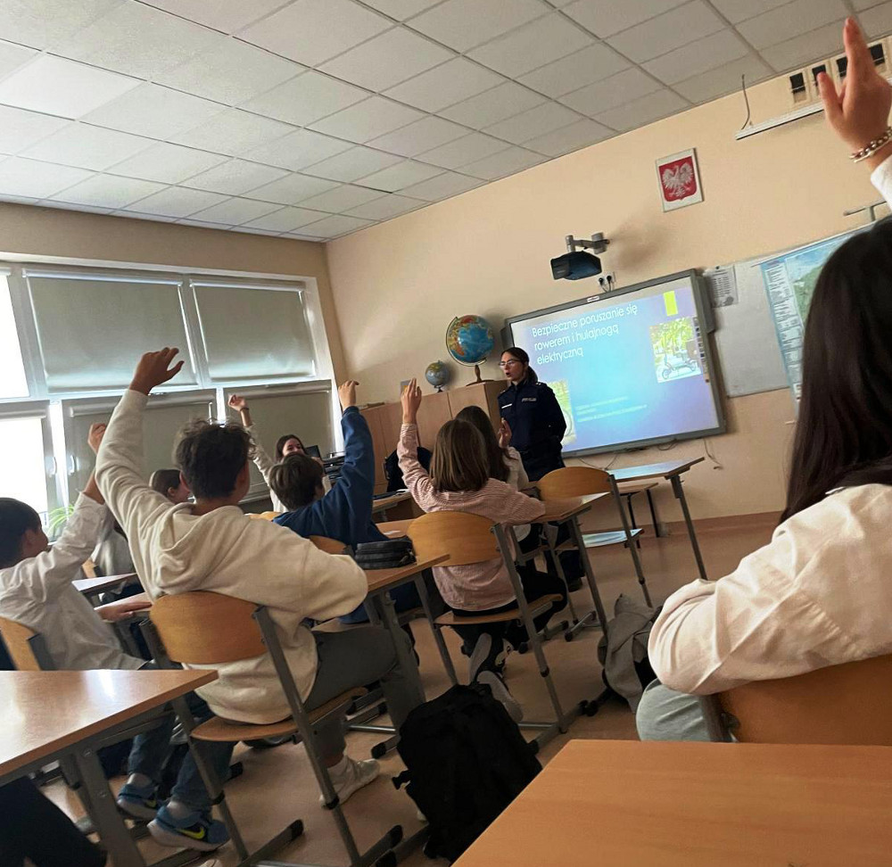 Spotkanie profilaktyczne z uczniami na temat bezpiecznej jazdy hulajnogami elektrycznymi