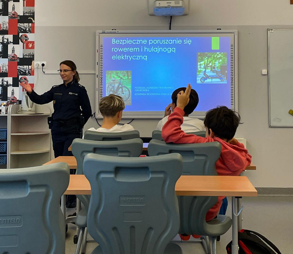 Mimo iż sezon na jazdę hulajnogą dobiega powoli końca, wiedza, jaką przekazywała policjantka uczniom, w trakcie tych spotkań jest uniwersalna i towarzyszyć młodym ludziom przez cały rok.