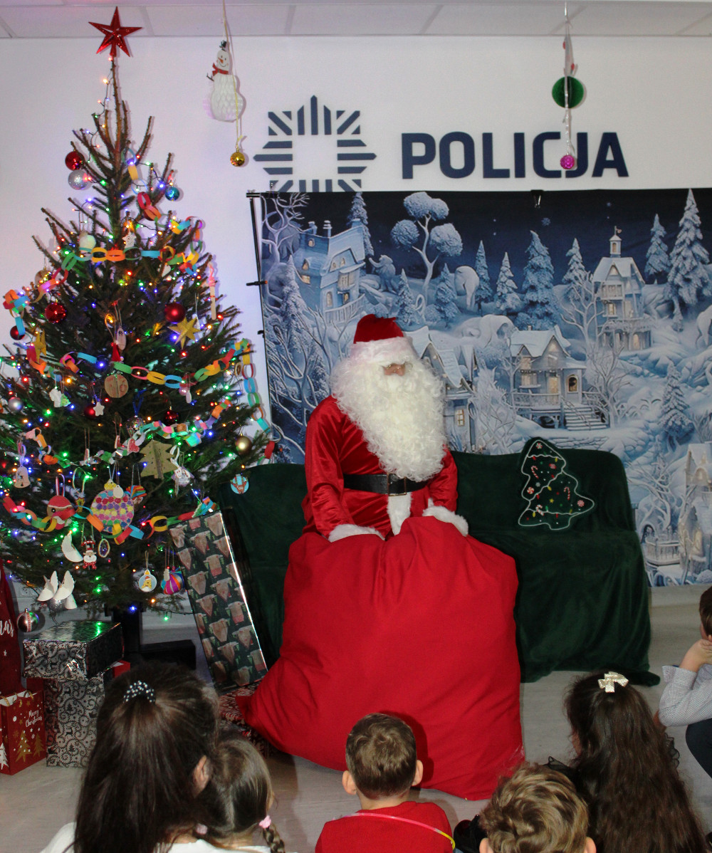 Policjantki, pomocniczki Św. Mikołaja, przygotowały dla dzieci ciekawe zabawy. Było mnóstwo uśmiechu i prawdziwej dziecięcej radości. Dzieciaki, z ogromnym entuzjazmem przemierzały korytarze komendy, w poszukiwaniu ukrytych prezentów, które podstępem wykradł złodziejaszek. Były również świadkami jego schwytania i zamknięcia w policyjnym więzieniu.