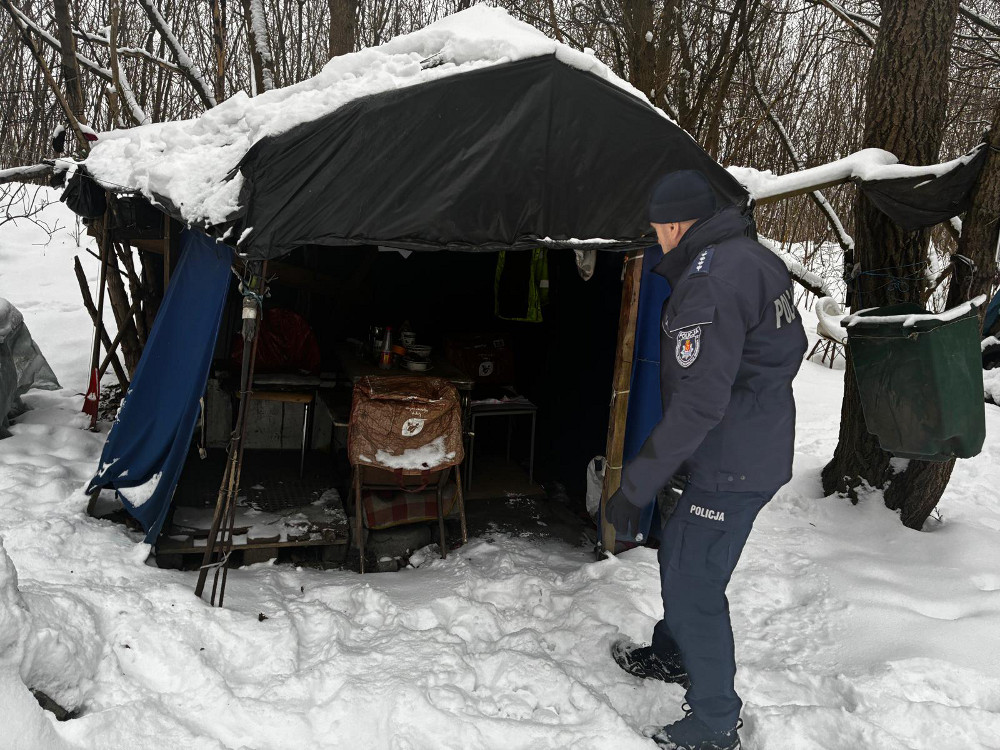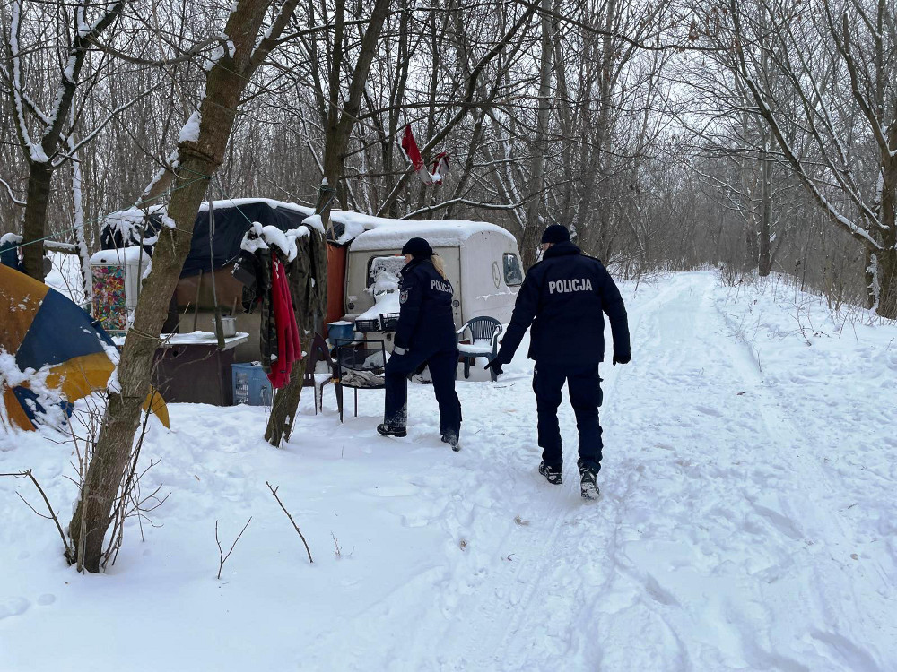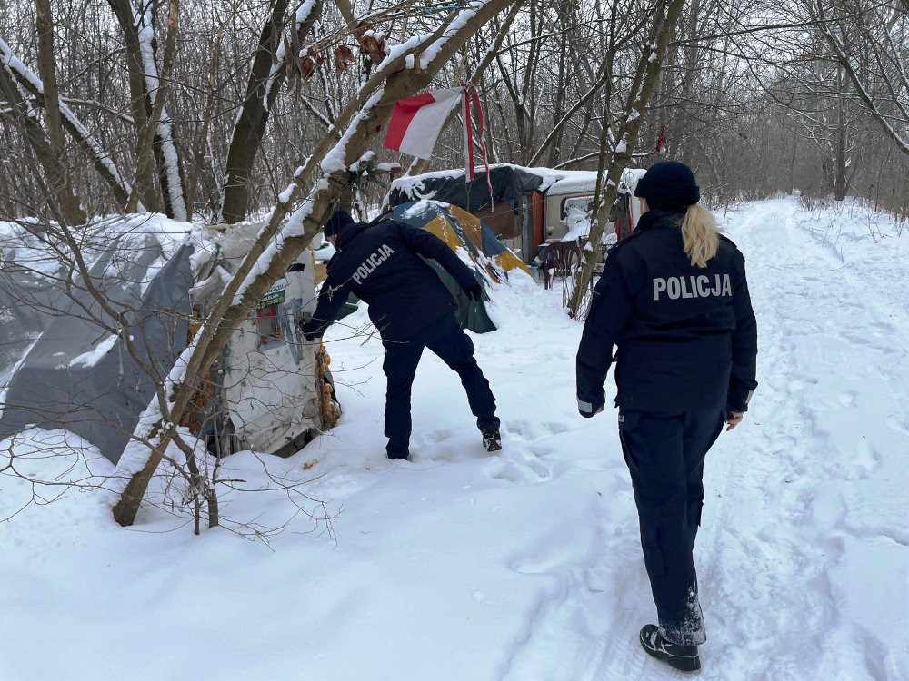 Policjanci z Komedy Rejonowej Policji Warszawa VI, w toku bieżącej służby, we współpracy z funkcjonariuszami Straży Miejskiej, kontrolują miejsca, w których mogą szukać schronienia osoby pozostające w kryzysie bezdomności. Policjanci sprawdzają brzeg Wisły, ogródki działkowe i tzw. "dzikie" obozowiska.