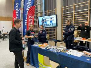 Podczas finału WOŚP funkcjonariuszki podkom. Agnieszka Wiatrowicz-Grabowska oraz sierż. Klaudia Dadasiewicz przygotowały specjalne stanowisko profilaktyczno-edukacyjne, które cieszyło się dużym zainteresowaniem uczestników wydarzenia zarówno najmłodszych, jak i dorosłych. Policjantki rozmawiały z dziećmi i młodzieżą o zasadach bezpieczeństwa w codziennych sytuacjach, przypominały o odpowiedzialnych zachowaniach w ruchu drogowym, w szkole oraz w internecie.
