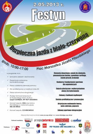 2 maja w godzinach 10.00 – 17.00 na placu Marszałka Józefa Piłsudskiego odbędzie się festyn profilaktyczny pod hasłem „Bezpieczna jazda z biało-czerwoną”.