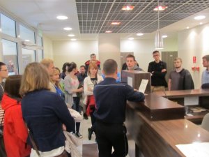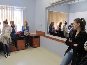 Zainteresowaniem również cieszyły się zarówno nowoczesne pomieszczenie dla osób zatrzymanych i monitoring. Studenci usłyszeli jak ważną rolę pełni dyżurny jednostki Policji. Goście obejrzeli siłownię, gdzie policjanci podnoszą sprawność fizyczną. Spotkanie zakończyło się obejrzeniem radiowozów policyjnych i rozmową na temat przyjęć do służby w Policji. Ostatnie spotkanie ze studentami już za tydzień.