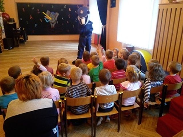 Policjantka opowiedziała dzieciom, jak należy przechodzić przez jezdnię. Rozmawiała z nimi o bezpiecznych zachowaniach na drodze, placu zabaw i w domu. Przypomniała również jak należy zachowywać się w kontakcie z osobami obcymi. Na zakończenie zajęć, mł. asp. Monika Trzcinka wręczyła przedszkolakom drobne upominki w postaci odblasków.