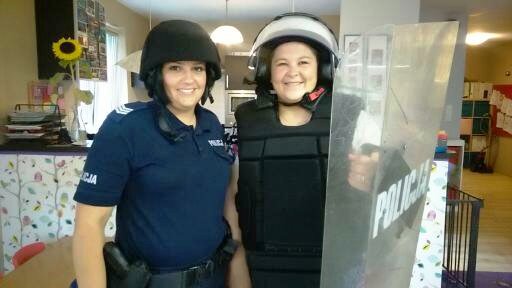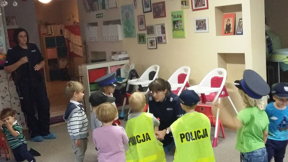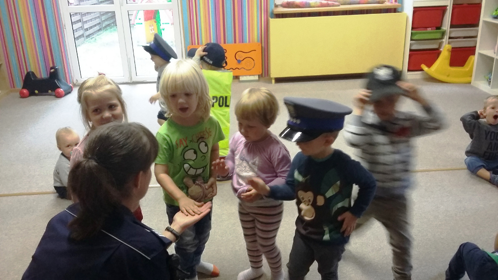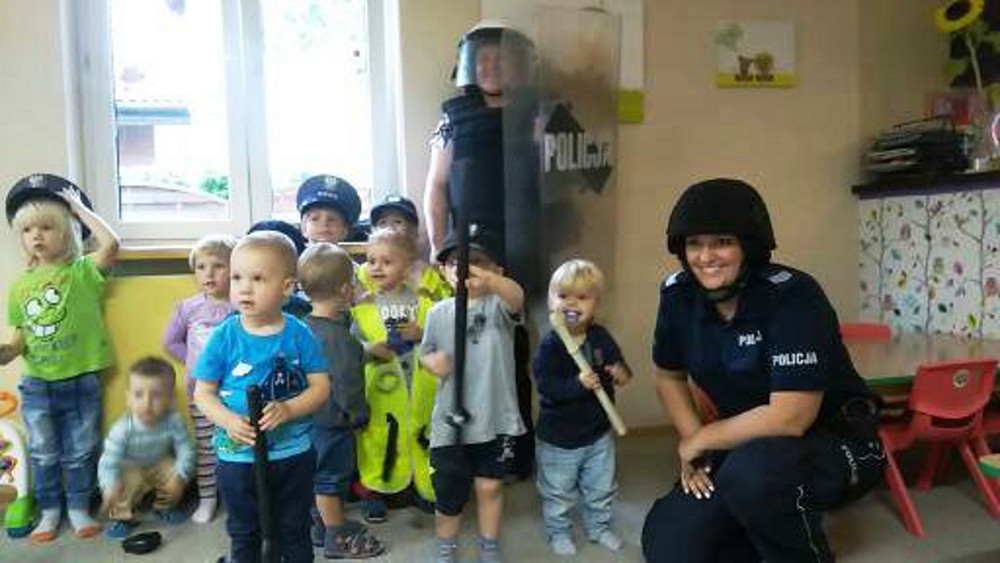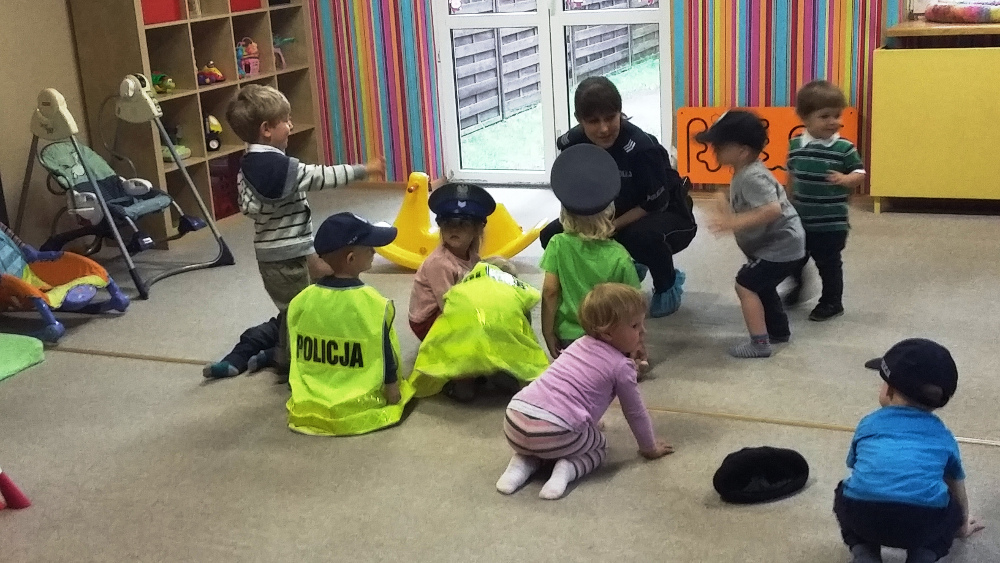 Dzieci ze żłobka ,,Cudowne lata" przy ul. Myśliwskiej 11 w Warszawie odwiedziły policjantów z komisariatu Policji na Białołęce. Dla najmłodszych taka wizyta i spotkanie z policjantami to wielkie przeżycie i atrakcja. Dzieci ucieszyły się na widok przedmiotów, które służą policjantom w ich codziennej służbie, a szczególnie możliwość dotknięcia sprzętu policyjnego.
