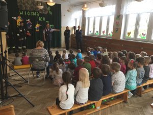 Policjantka z rewiru dzielnicowych mł. asp. Magdalena Wadecka oraz sierż. sztab. Dominika Dąbrowska z prewencji kryminalnej odwiedziły dzieci w Przedszkolu przy ulicy Strzeleckiej. Funkcjonariuszki opowiedziały maluchom o podstawowych zasadach bezpieczeństwa na drodze, w domu i przedszkolu. Potem wraz ze strażakami bardzo ciekawie opowiedziały o tajnikach swojej służby. Na koniec tej wizyty maluchy dostały książeczki edukacyjne.