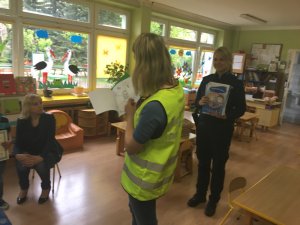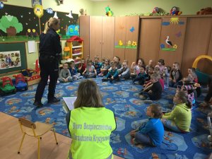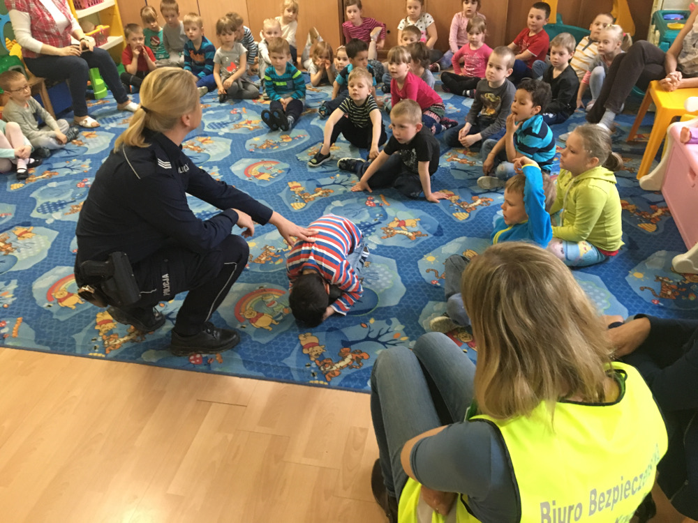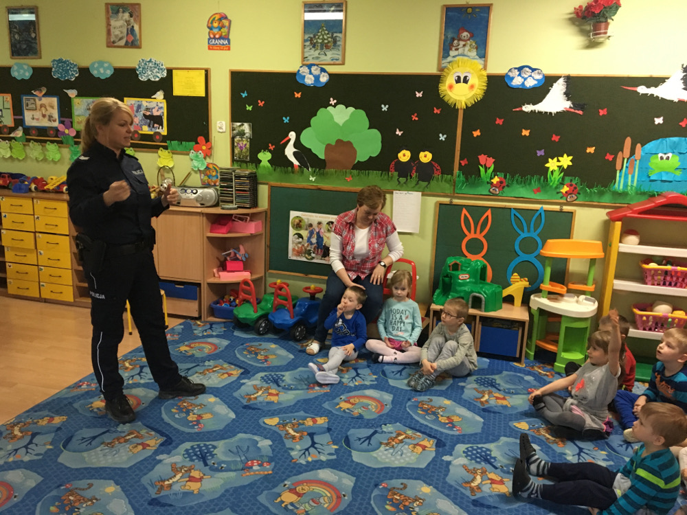 Policjantki przestrzegały dzieci przed obdarzaniem zaufaniem osób nieznajomych, szczególnie tych, których intencji, nie są w stanie ocenić. Funkcjonariuszki podawały liczne przykłady, w których maluchy mogłyby znaleźć się w niebezpiecznej i nieprzyjemnej sytuacji. Rozmawiały również o tym, jak przedszkolaki powinni zachowywać się w drodze do szkoły i podczas powrotu do domu.
