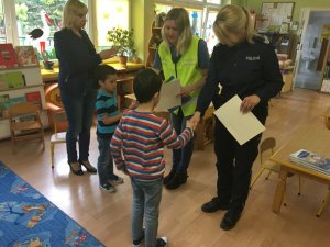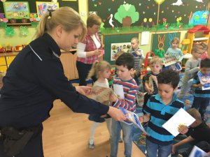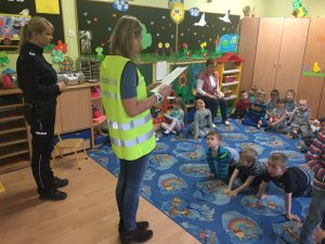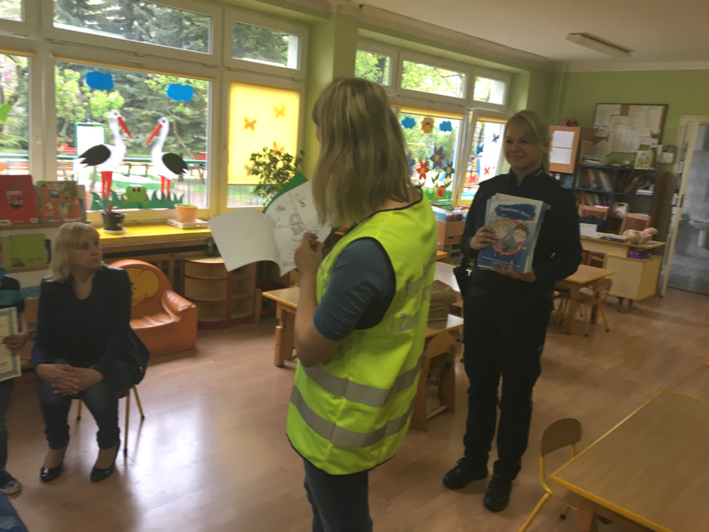 Dzieci z ogromnym zainteresowaniem wysłuchały policyjnej prelekcji. Na zakończenie goście wręczyli dzieciom dyplomy za udział w zajęciach oraz kolorowanki edukacyjne. Maluchy zaś podziękowały przedstawicielom służb za niezwykle kształcący wykład.