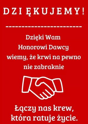 Organizatorzy dziękują wszystkim osobom, które wzięły udział w tej akcji. Szczególne podziękowania należą się przedstawicielom Regionalnego Centrum Krwiodawstwa i Krwiolecznictwa w Warszawie.
