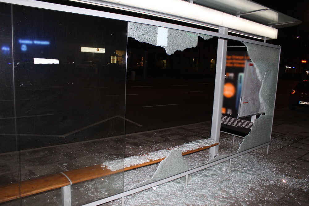 Technik kryminalistyki wezwany na miejsce zdarzenia wykonał oględziny zniszczonego przystanku. Pokrzywdzony wycenił wartość powstałych uszkodzeń na kwotę 2000 złotych.