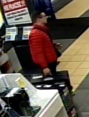 Rysopis mężczyzny: wiek około 30 lat, szczupła budowa ciała, ciemne włosy, okulary korekcyjne z czarną oprawką, ubrany był w czerwoną kurtkę, ciemne spodnie, ciemne buty z białą podeszwą, posiadał ciemną torbę przewieszoną przez ramię.