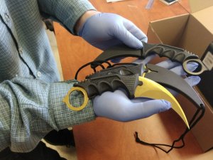 Mundurowi prowadząc dalsze działania zabezpieczyli również wykorzystany do przestępstwa pistolet oraz nóż. Przeprowadzili także przeszukanie w miejscu zamieszkania 23-latka, w trakcie którego zabezpieczyli dwa inne noże, oraz przedmiot przypominający broń i odzyskali telefon skradziony pokrzywdzonemu.