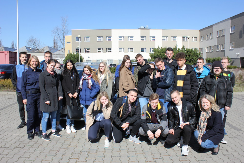 Podczas tej wizyty młodzież miała również okazję zwiedzić komendę oraz zapoznać się z pracą policjanta „od kuchni”. Uczniowie z zainteresowaniem przypatrywali się pracy oficera dyżurnego i pracownika monitoringu miejskiego. Obejrzeli "przejściówkę" i pomieszczenie dla osób zatrzymanych. Dzięki uprzejmości technika kryminalistycznego, mieli szansę dowiedzieć się, jak wygląda tworzenie zdjęć sygnalitycznych oraz kart daktyloskopijnych. Przy okazji zobaczyli, co znajduje się w walizce kryminalistycznej.
