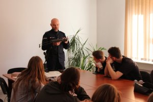 Instruktor wyszkolenia strzeleckiego zaprezentował im różne jednostki broni i wskazał, w jakich działaniach są wykorzystywane. Młodzież mogła również obejrzeć i przymierzyć sprzęt wykorzystywany przez policjantów podczas zabezpieczeń, a na koniec zasiąść za kierownicą radiowozu.