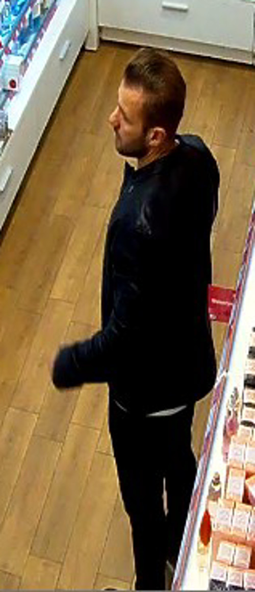 Mężczyzna widoczny na publikowanych zdjęciach może mieć bezpośredni związek z kradzieżą perfum z drogerii w galerii handlowej przy ul. Głębockiej 15 w Warszawie. Wartość strat wynosi 620 złotych. Zdarzenie miało miejsce 1 lutego br., w ramach wykonanych czynności policjanci zabezpieczyli zapis z kamer monitoringu.