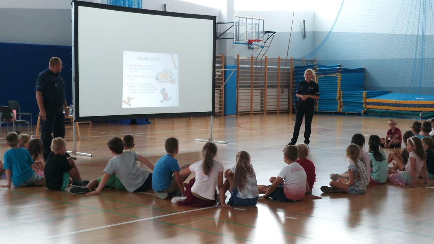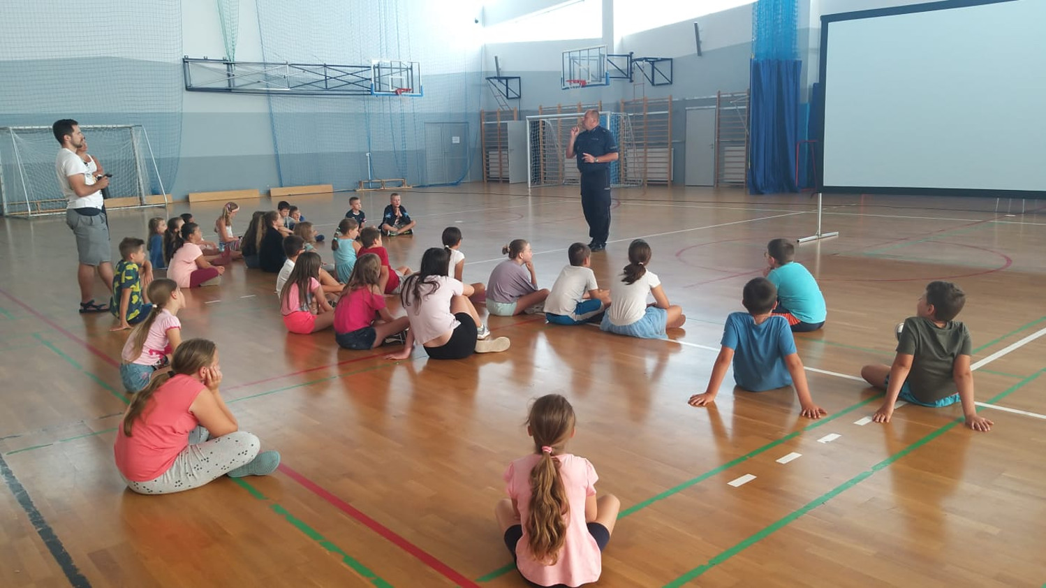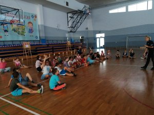 Funkcjonariusze w ramach akcji "Lato w mieście" przeprowadzili ciekawą prelekcję, podczas której poruszyli tematy związane z bezpieczeństwem w domu jak i poza nim oraz właściwym zachowaniem się w różnych sytuacjach, na drodze i w szkole. Przypomnieli również znaczenie numerów alarmowych.
